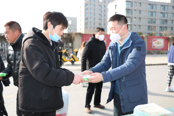 活動現(xiàn)場,人社局領(lǐng)導(dǎo)與天仁總經(jīng)理為留泰員工送上新春祝福的同時(shí)并為員工們派發(fā)水餃,讓他們充分感受到泰州這座城市的溫暖,并感謝他們?yōu)樘┲萁?jīng)濟(jì)建設(shè)和社會發(fā)展做出的貢獻(xiàn)。